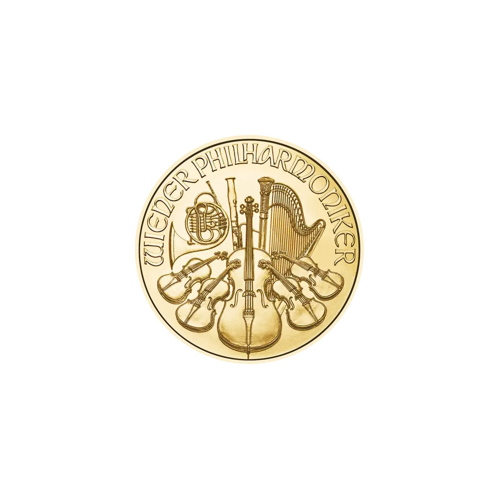 Der Wiener Philharmoniker verdankt seinen Namen dem berühmten österreichischen Orchester, das zu den besten der Welt zählt. Auf der Vorderseite der Goldmünze ist die große Orgel des Wiener Musikvereins abgebildet. Unterhalb der Orgel ist das Gewicht von 1/25 Unze, der Feingehalt von 999,9, das Prägejahr und der Nennwert von 4 EURO eingeprägt. Darüber ist die Inschrift "REPUPLIK ÖSTERREICH" eingeprägt. Auf der Rückseite sind einige Musikinstrumente des Philharmonischen Orchesters abgebildet und am oberen Rand ist der Name des Orchesters und die Goldmünze "WIENER PHILHAMRONIKER" zu sehen. Wie die oben genannten Goldmünzen ist auch die Wiener Philharmoniker in den Größen 1 oz, 1/2 oz, 1/4 oz und 1/10 oz erhältlich.