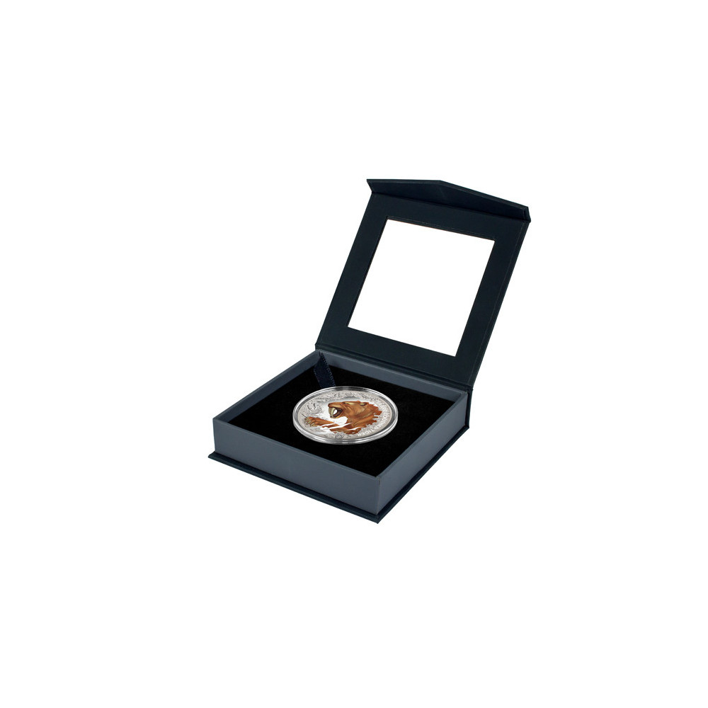 Die Münze ist in Proof-Qualität geprägt und zeichnet sich durch eine leuchtende Farbgebung und plastische Tiefe aus.